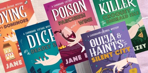Small town sass, rock-solid friendships, and weekly game night is the core of this series based in Bluff Springs, a little town in Arkansas where gossip travels like a Wi-Fi signal and secrets never stay buried for long. Readers who like their whodunits with clever amateur sleuths, fierce friendships, and a puzzle to unravel, love Jane Elzey’s Cardboard Cottage Mystery series.
